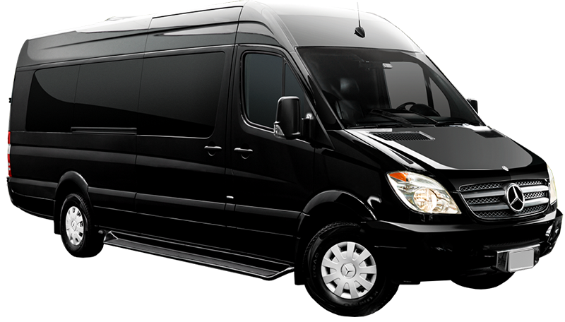 This Sprinter is set up like a limousine inside but it has the convenience of a party bus because you can stand up. It’s easy to get in and out!